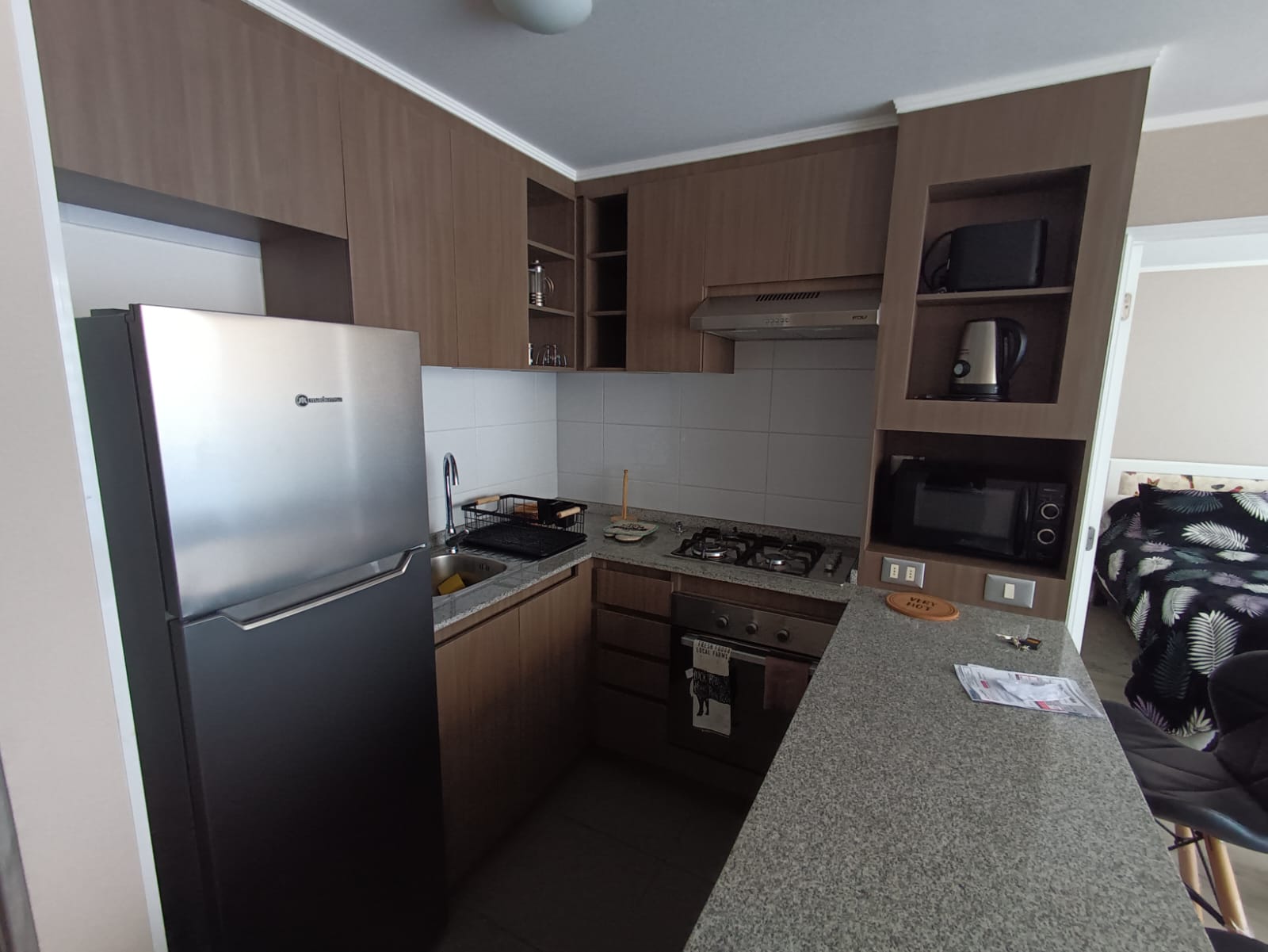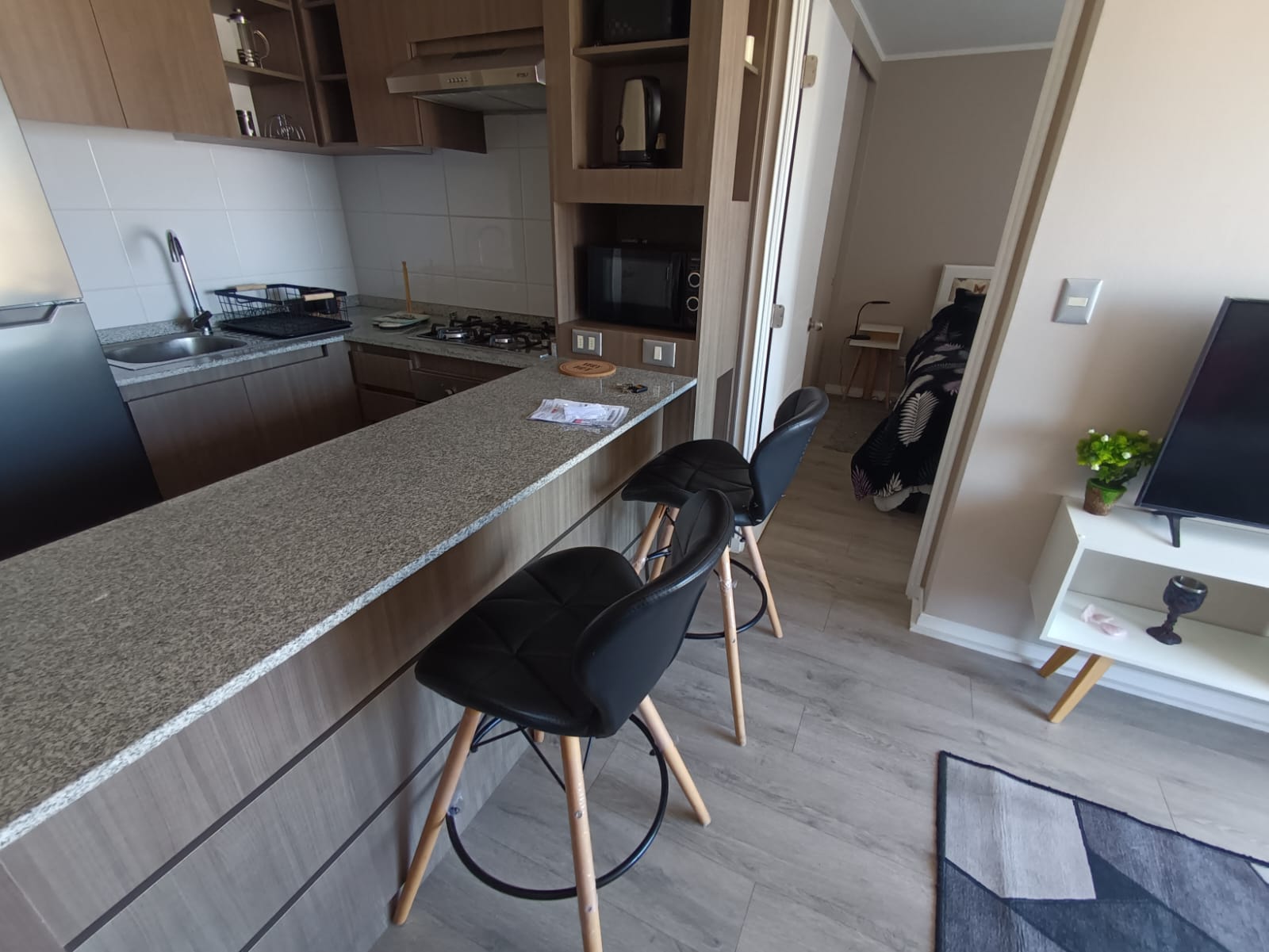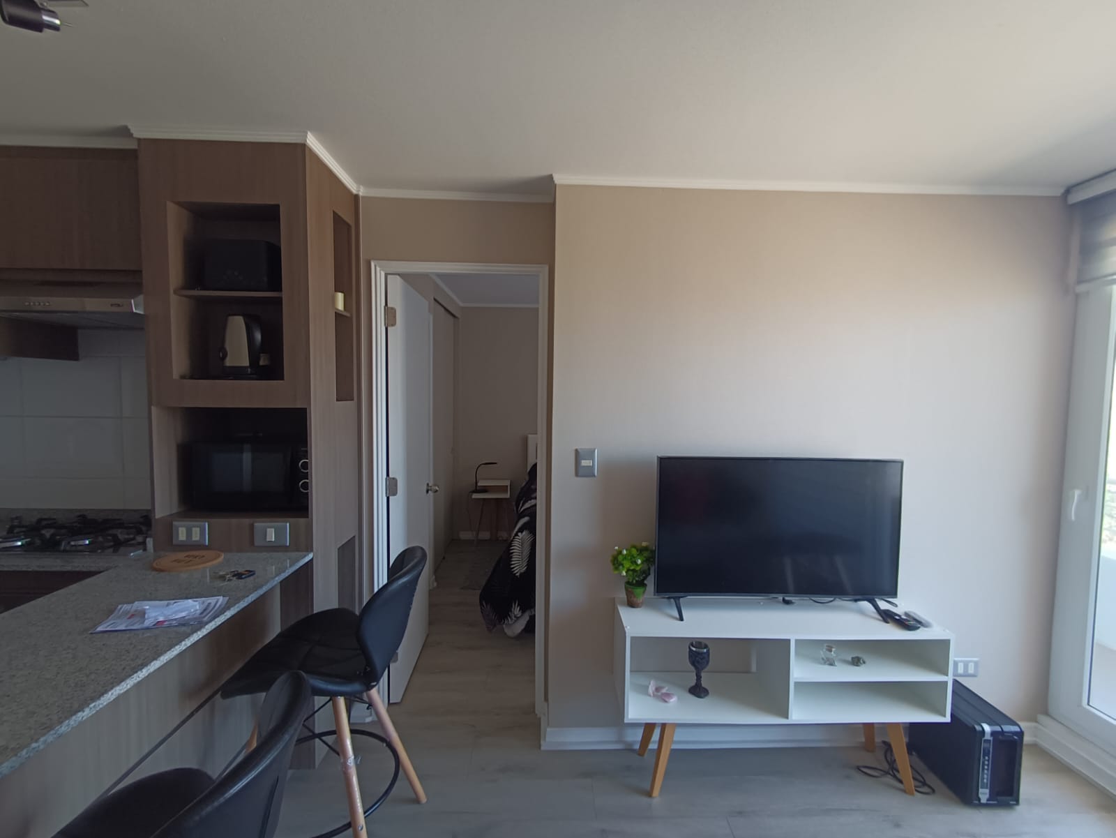 Con un valor de arriendo de CL$430.000, este departamento amoblado de 36 m² ofrece un dormitorio y un baño, además de una cocina completamente equipada y un acogedor balcón con vista a la bahía de Valparaíso, que inunda de luz natural el espacio.