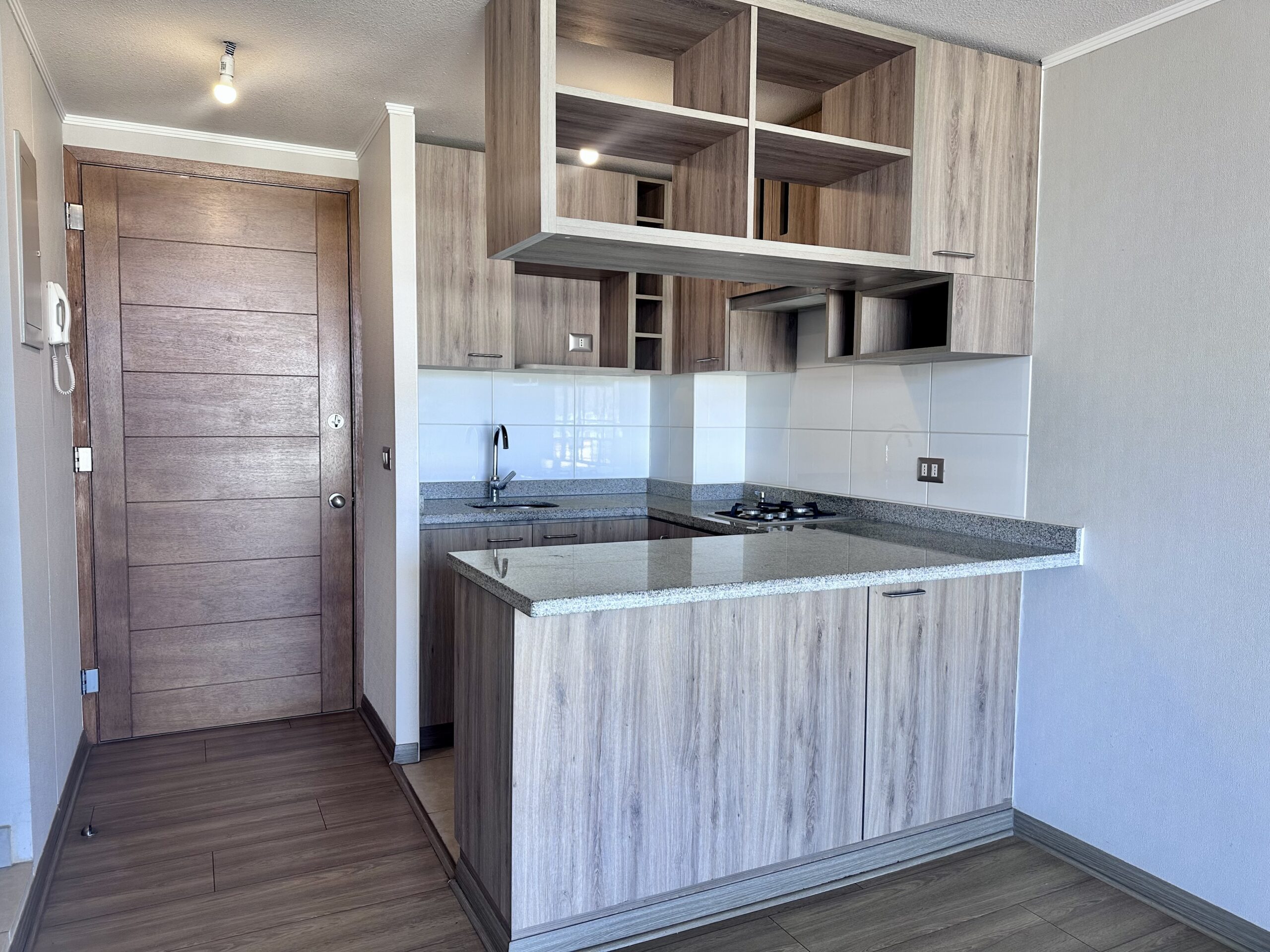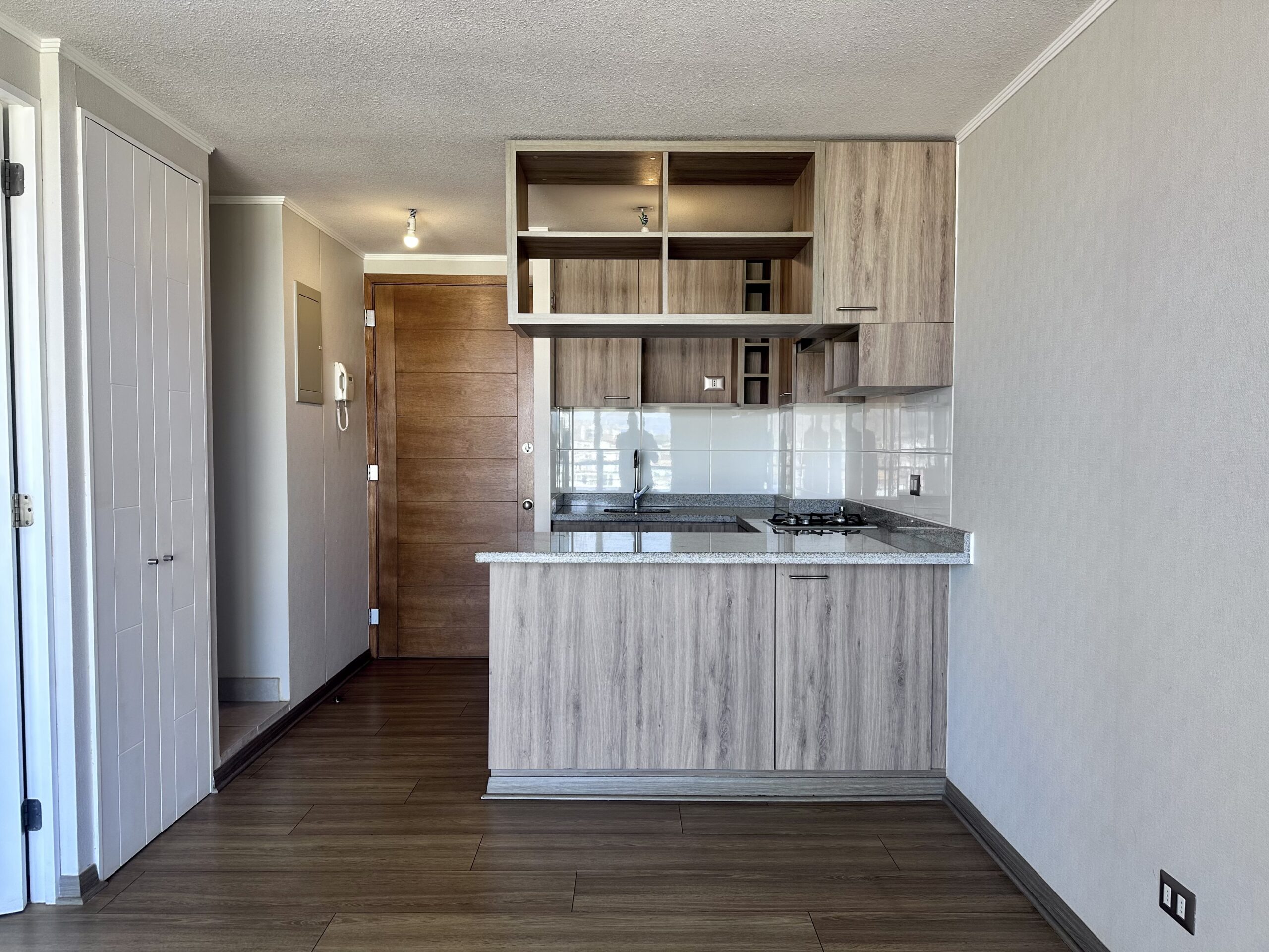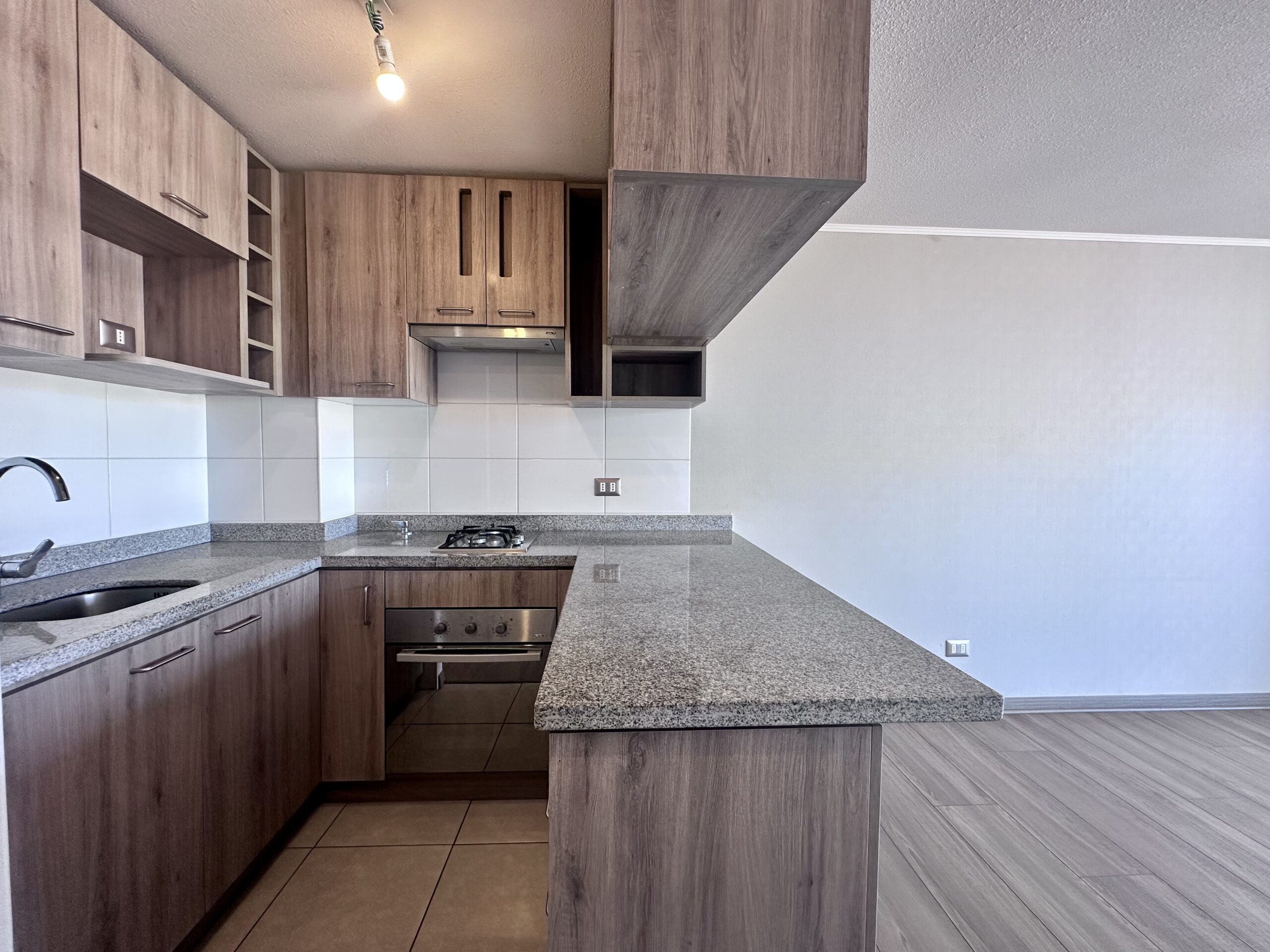 Características del departamento 37 m² totales 1 dormitorio 1 baño Cocina tradicional Living comedor luminoso Piso flotante Cerámica en cocina y baño Ventanas termopanel Gas por cañería y agua caliente por calefón Orientación oriente Incluye estacionamiento.
