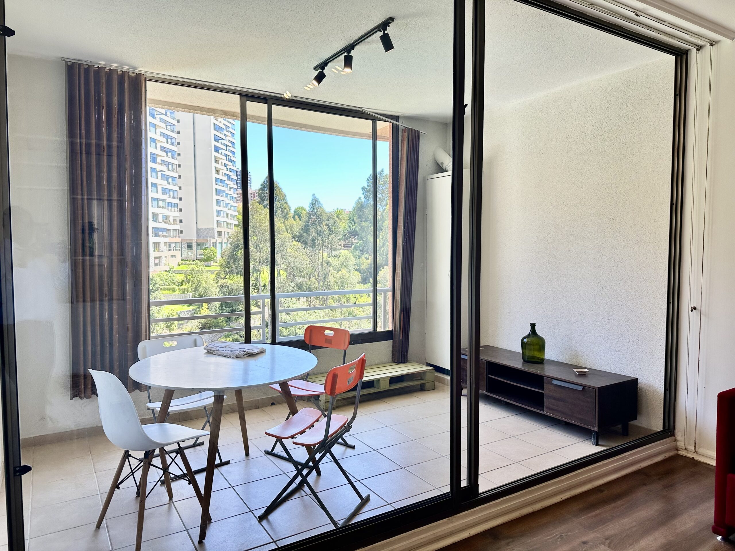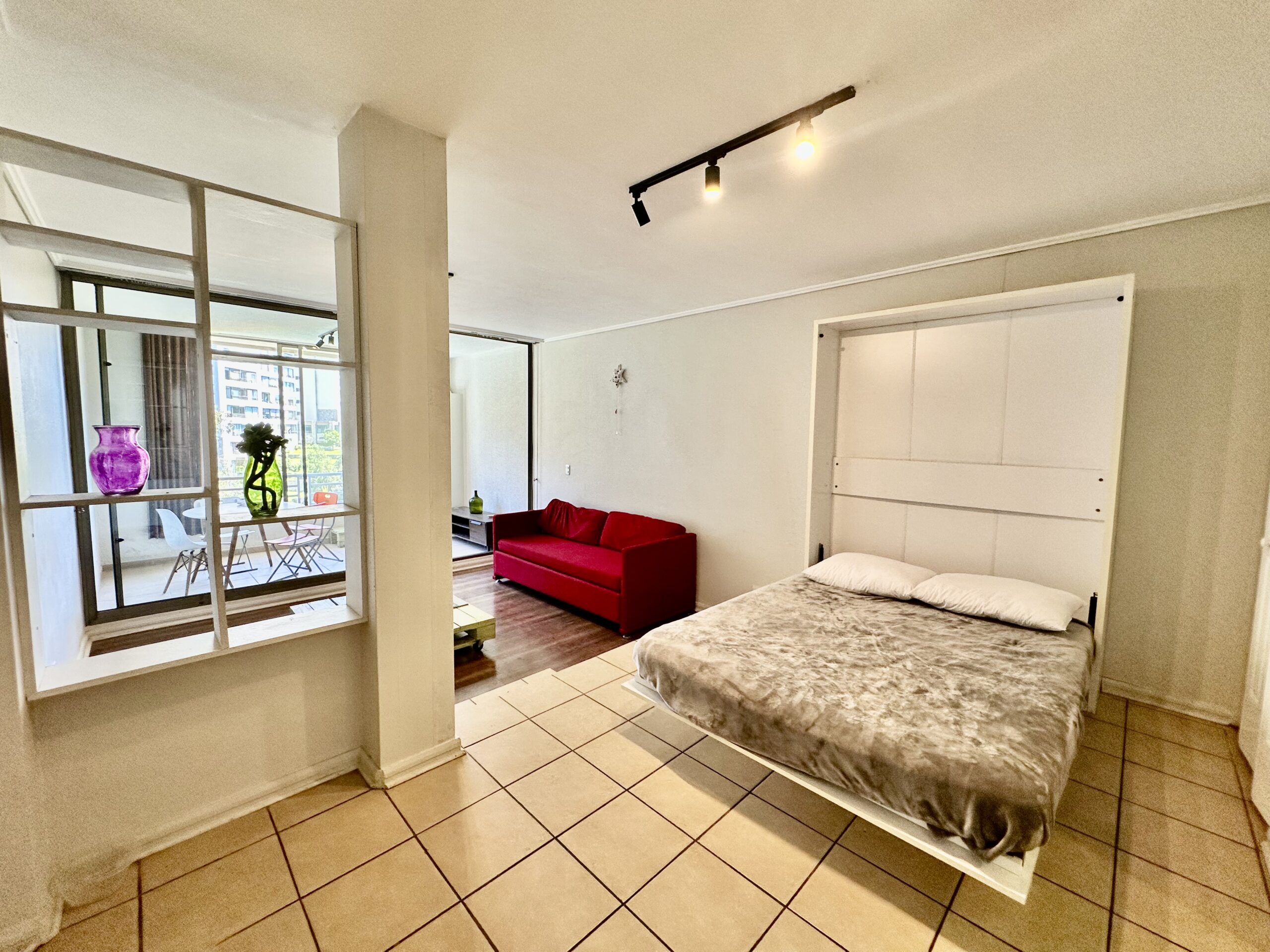 El departamento: funcional, cómodo y con plus real Este estudio tiene características que lo diferencian: Baño independiente Cocina cerrada Terraza con vista a los árboles Estacionamiento propio Bodega La cocina separada permite mayor orden y una mejor experiencia de uso, tanto para propietario como para arrendatario.