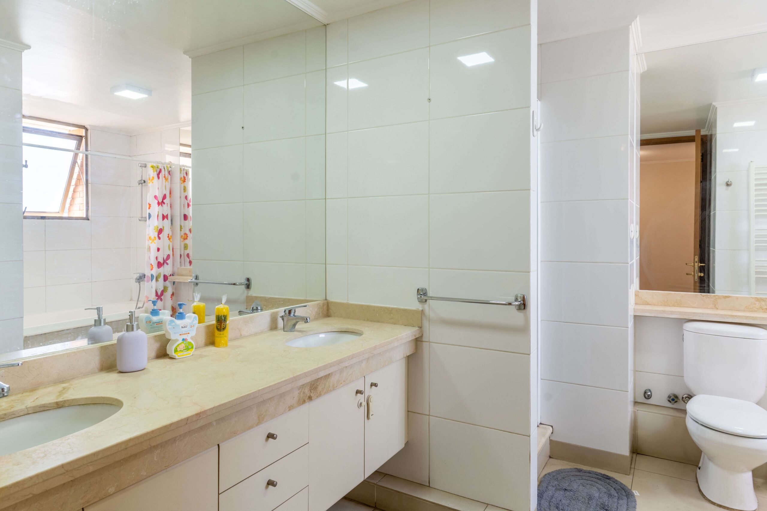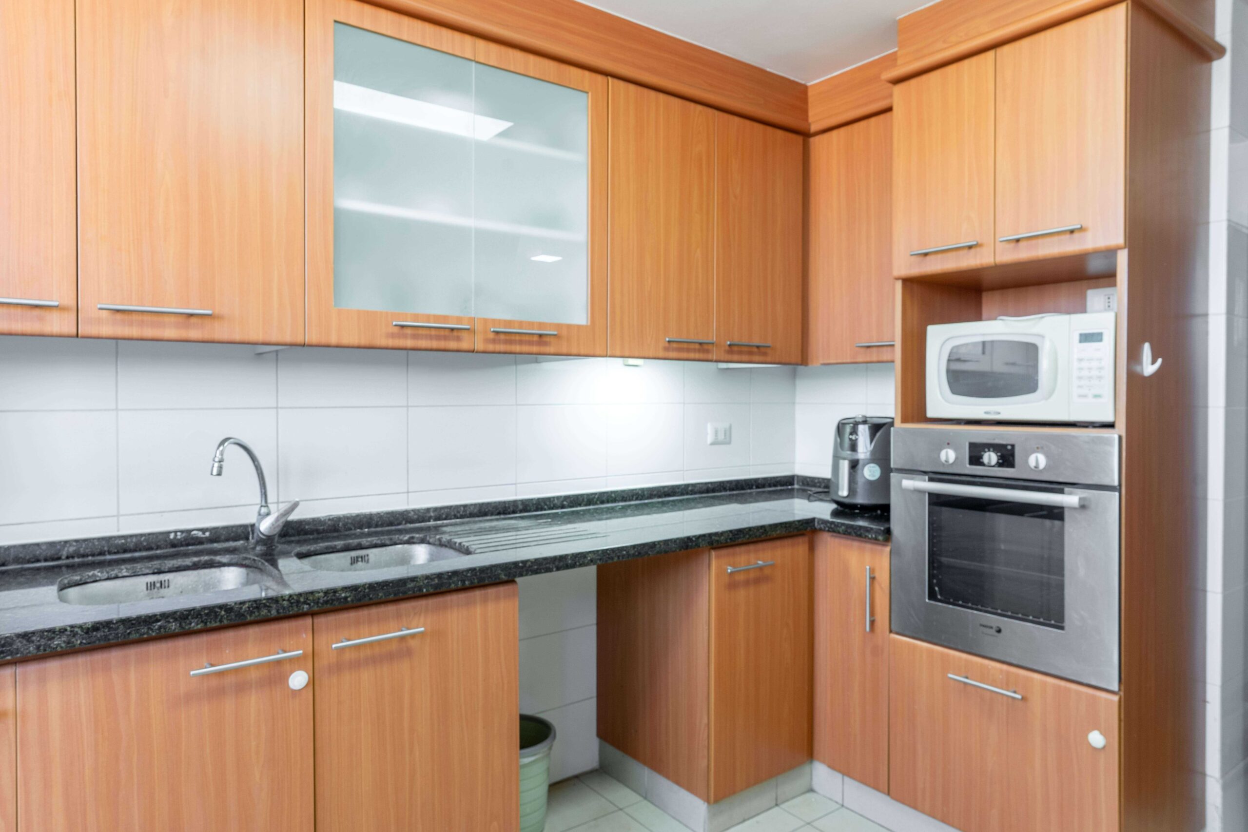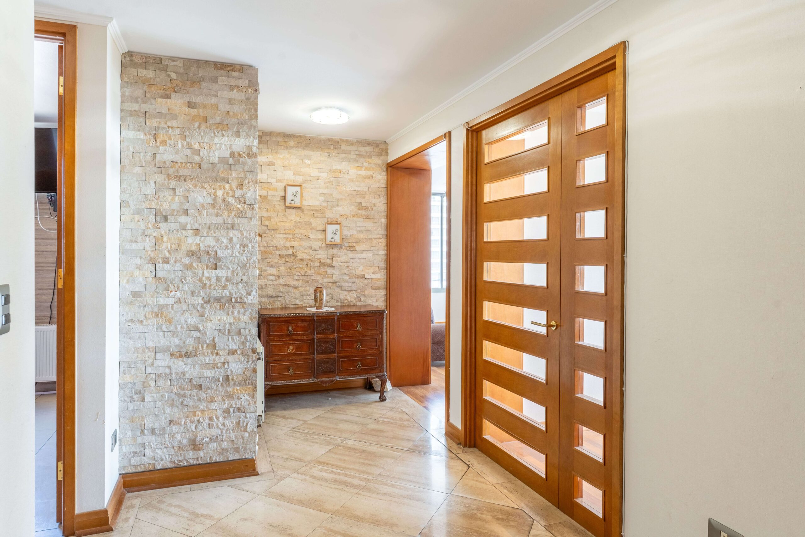 La cocina cuenta con cubierta de mármol y el departamento dispone de 2 estacionamientos y 2 bodegas.